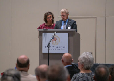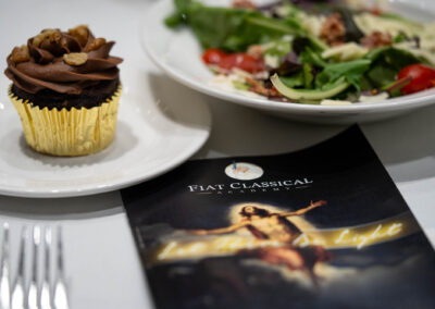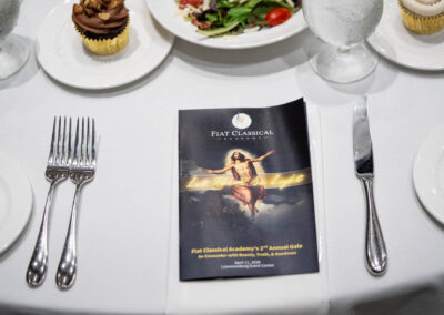 This portion of the Gala was concluded with a keynote address by Dr. Ryan Hanning. As a professor, writer, homesteader, and Catholic speaker, Dr. Hanning spoke about the importance and need to restore Catholic culture in our world today. He spoke about how schools like Fiat Classical Academy give hope to the Church’s present and future as we prepare students to live in the world as men and women of faith.