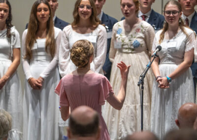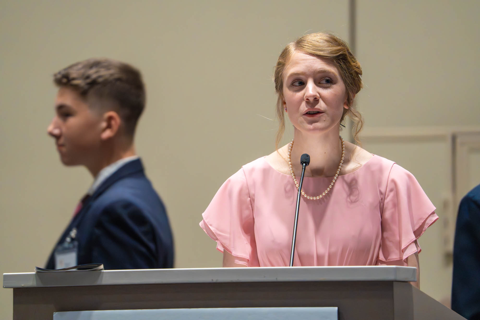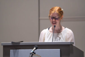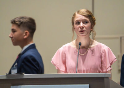 the community that has formed around her. Brian and Kelly Ante, Fiat parents, spoke about how Fiat has challenged their daughter academically and helped her find direction and discern what is worth pursuing. They spoke about how their next oldest daughter will be enrolling in Fiat next year! Lilly S., a junior at Fiat, described how each class has challenged her to grow in ways that have expanded her abilities, confidence, and comfort zone as well as encouraged friendships and growth in her sister who is a sophomore.