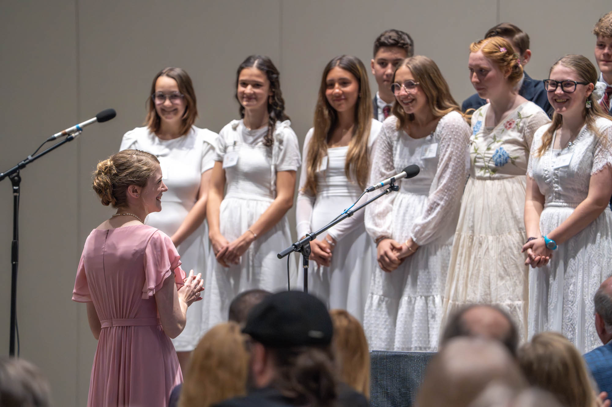 Brad Macke shared our goal of raising $225,000 and the generous matching gift fund of $44,500 to be matched dollar-for-dollar by donations of at least $900 (which equates to $75 a month). Brad also shared concrete giving opportunities of how the generosity of our partners will be used for the upcoming school year including purchasing a microscope for Biology class, supplying financial aid for families, and preparing to graduate our first class of seniors in the spring of 2027.